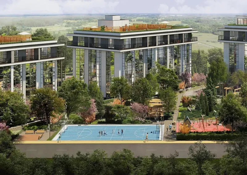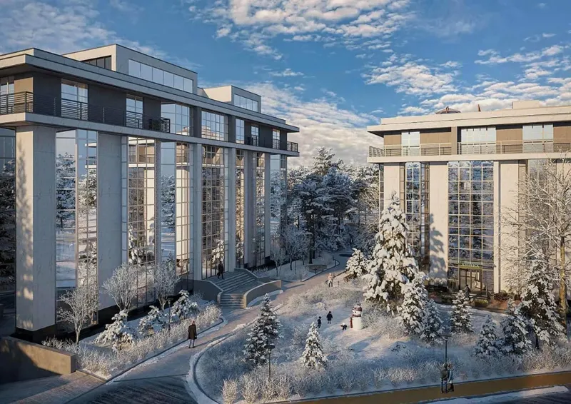 В комплексе всего 4 дома, в которых расположено по 5 этажей и 132 квартиры различной комнатности: 1‑комнатная, 2‑комнатная, 3‑комнатная и 4‑комнатная (с возможностью перепланировки).