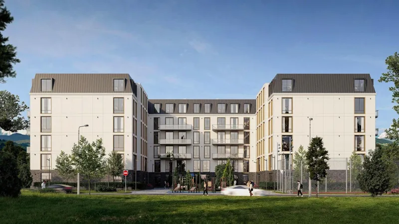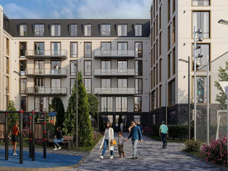 Комплекс состоит из четырех 6-этажных домов, возводимых по монолитно-каркасной технологии. Фасады зданий будут выполнены в современном стиле. Высота потолков в квартирах составляет 3,0 метра, отделка — черновая, что позволяет будущим владельцам самостоятельно продумать дизайн интерьера.
