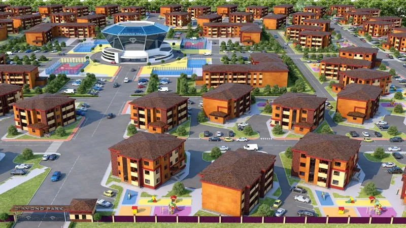 Жилой комплекс Diamond Park в городе Косшы от застройщика An Capital представляет собой 74 дома III класса комфортности. Здания имеют 3, 4 или 6 этажей, построены по кирпичной технологии. В жилом комплексе отсутствуют лифты, но предусмотрен гостевой паркинг. Стены домов выполнены из газоблока и кирпича, утеплены пенополистиролом. Отопление автономное. Всего в комплексе 700 квартир площадью от 24,94 до 88 квадратных метров, с высотой потолков 2,7 метра. Квартиры предлагаются с предчистовой отделкой, перепланировка не предусмотрена. Территория ЖК Diamond Park огорожена и обустроена внутренним двором.