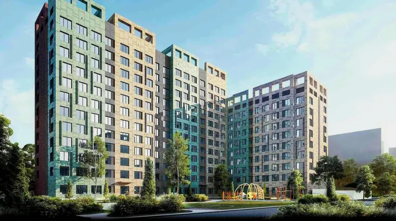 Локация топчик, двор большой, озеленения не хватает. Взяли пихнули по центру двора еще один блок, из-за чего стало слишком плотно, учитывая дурное количество этажей в домах. Ну и расцветка фасада на любителя