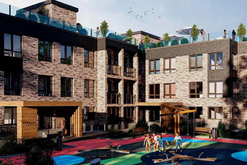 ЖК «Levitas» в Алматы является комфортным жилым комплексом III класса. Здесь есть окна с пластиковыми рамами, фасад с фиброцементными панелями, газоблоки для внешних стен. Двор комплекса закрыт и территория оснащена наземным паркингом, зоной воркаут, детской площадкой и террасой с зонированием. Высота потолков 3,1 м, отопление обеспечивается центральным. Здесь можно найти квартиры с различным количеством комнат и площадью от 51-85 м2. Дома комплекса строятся по методу монолитно-каркасной технологии. Квартиры можно заказать с улучшенной черновой отделкой и с возможностью перепланировки. В комплексе «Levitas» всего 2 дома и 33 квартиры. На текущий момент реализуемые квартиры следует уточнять в отделе продаж застройщика.