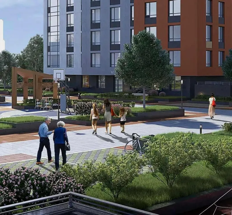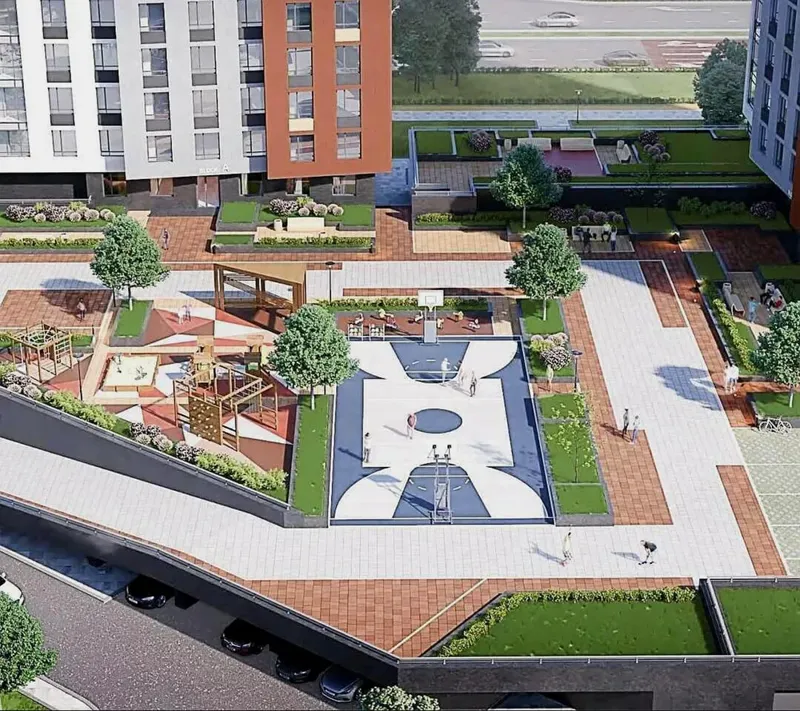 Район действительно отличный, но дом будто бы воткнули без всякой территории, прямо впритык на перекрёсток. Строили его настолько быстро, что при стройке постоянно что-то отваливалось — сама наблюдала за этим процессом 😂 Своей территории почти нет, всё очень сжато, в итоге — ещё один муравейник